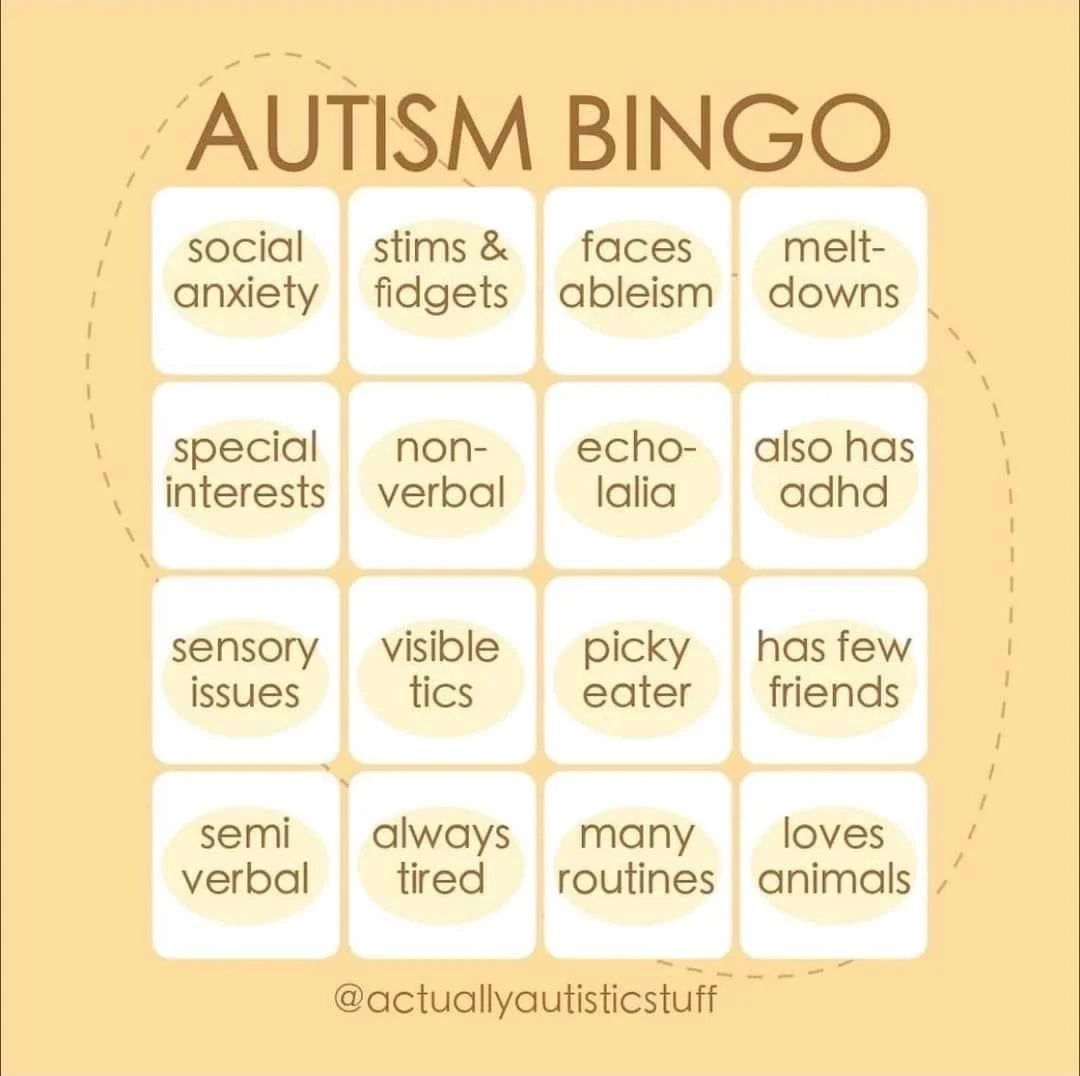 I saw this Autism Bingo card earlier, I ticked nine of the boxes, and it seems to me that context is all important…