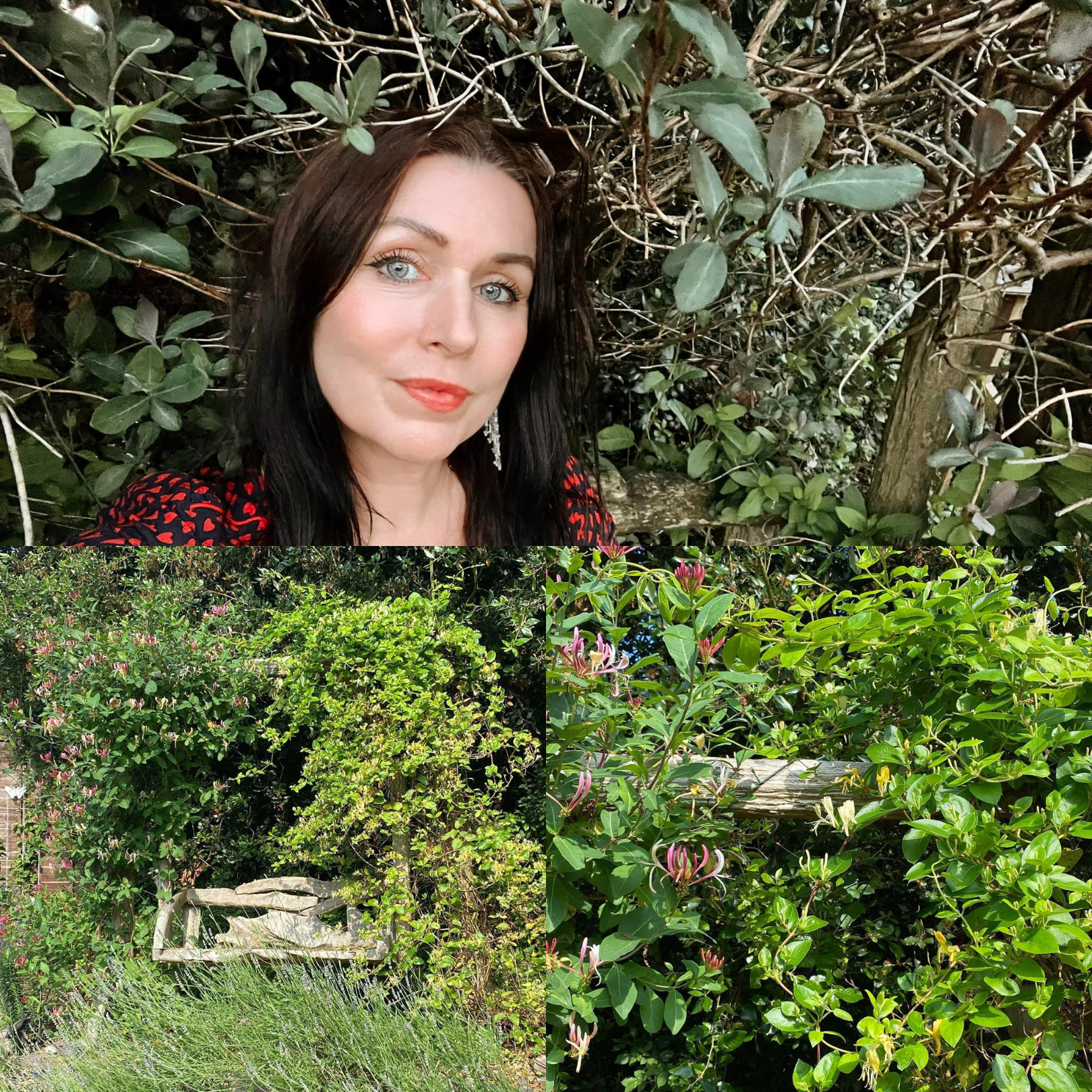 The first photo was taken this week as I sat on the swing seat amidst the honeysuckles springing back to life… the other photos taken three years ago, and shared along with these words: